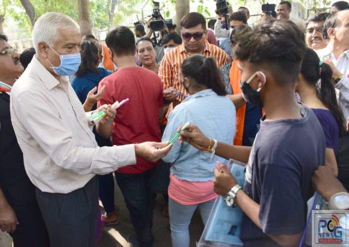 કલેક્ટર અતુલ ગોર તથા મેયર કેયુર રોકડિયા, ઉપમેયર નંદાબેન જોશી, અગ્રણી ઋત્વિજ જોશી, નગરસેવકો સહિતના અગ્રણીઓ સવારના વિદ્યુતનગર સ્થિત વિદ્યુત વિદ્યાલય ખાતે પહોંચ્યા હતા. જ્યાં આ મહાનુભાવોએ પરીક્ષા ખંડમાં જઇ રહેલા છાત્રોને શુભકામનાઓ પાઠવવા સાથે ચોકલેટથી મ્હોં મીઠા કરાવ્યા હતા. ઉપરાંત પુષ્પ, બોલપેન આપીને આવકાર્યા હતા. મહાનુભાવોએ પરીક્ષાનો ડર રાખ્યા વિના કસોટીમાંથી પાર ઉતરવા શીખ આપી હતી.