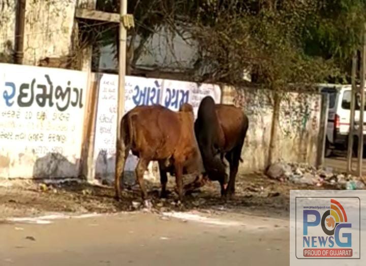 કરજણ નવાબજાર એસ.ટી. ડેપો જવાના માર્ગ ઉપર પમ્પીંગ સ્ટેશન પાસે બે જબરદસ્ત બાહુબલી આખલા બાખડતાનો વિડીયો વાયરલ થયો. આ યુદ્ધ લગભગ અડધો કલાક ચાલ્યું. બે આખલાને છુટા પાડવા આસપાસના લોકોની ઘણી મહેનત બાદ આખલા છુટા પડ્યા હતા. આવા ભયંકર આખલાના યુદ્વમાં નાના બાળક કે પછી વૃદ્વ વડીલો કે પછી વાહન ચાલક વચ્ચે અડફેટમાં આવી જાય અને કોઈ ગંભીર બનાવ બનશે તો જવાબદાર કોણ? આખલાના માલિક કે વહીવટી તંત્ર ? એક તરફ કરજણ નગરપાલિકા કરજણ શહેરમાં ટ્રાફિકની સમસ્યાઓને લઈને નાના મોટા લારી ગલ્લા અને કેબીનોના દબાણો દૂર કરી. દબાણ હટાવોની જુંબેશ હાથ ધરી હતી. લારી ગલ્લાવાળાઓથી પણ ગંભીર પરિસ્થિતિ રોડ પર બેસેલા તેમજ રખડતા ઢોરની ટ્રાફિક સમસ્યા તેમજ જીવ જોખમી વધુ નજરે પડે છે છતાય વહીવટી તંત્ર ચૂપ કેમ? શું કરજણમાં રખડતા પશુ પાલકોના માલિકો સાથે સાઠગાંઠ છે તેવું લોકચર્ચાએ જોર પકડયું છે. ગુજરાત સરકારે હાલમાં રખડતા ઢોર પર કડક કાયદો પસાર કર્યો છે. તો શું કરજણ નગરપાલિકા આ કાયદાનું પાલન કરાવશે કે કેમ તે આવનાર સમય બતાવશે.
