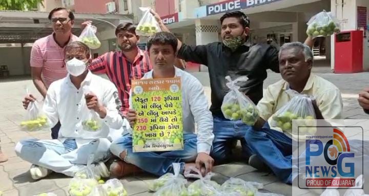 વડોદરાના યુવાનો એ લીંબુના ભાવ વધારા વિશે અનોખો વિરોધ પ્રદર્શિત કર્યો હતો.