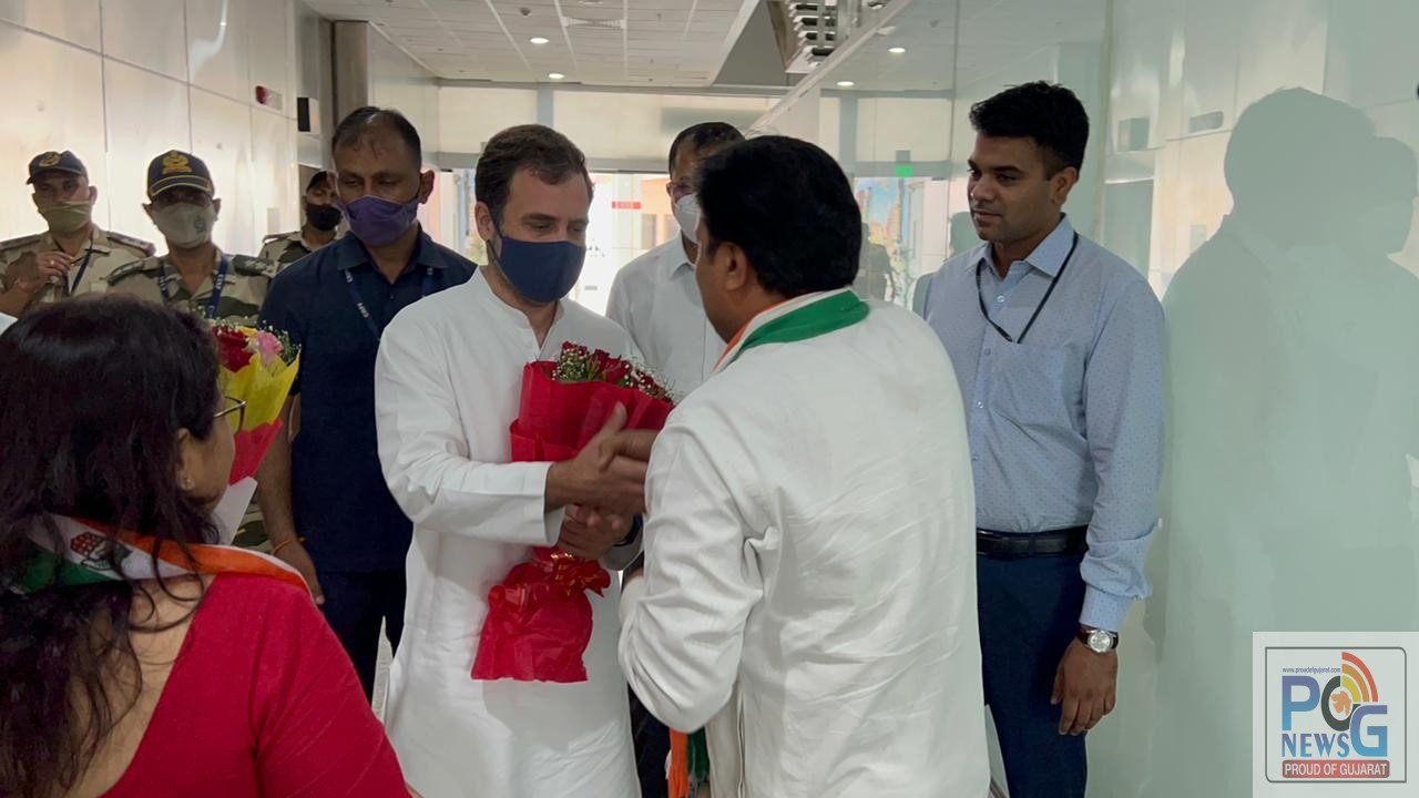 કોંગ્રેસ નેતા રાહુલ ગાંધીનું વડોદરાના એરપોર્ટ પર કરાયું ભવ્ય સ્વાગત.