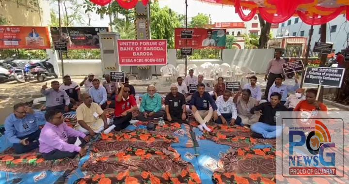 વડોદરાના અલકાપુરીમાં યુનાઇટેડ ફોરમ ઓફ બેંક ઓફ બરોડાનાં કર્મચારીઓએ ધરણા પ્રદર્શન કર્યું.
