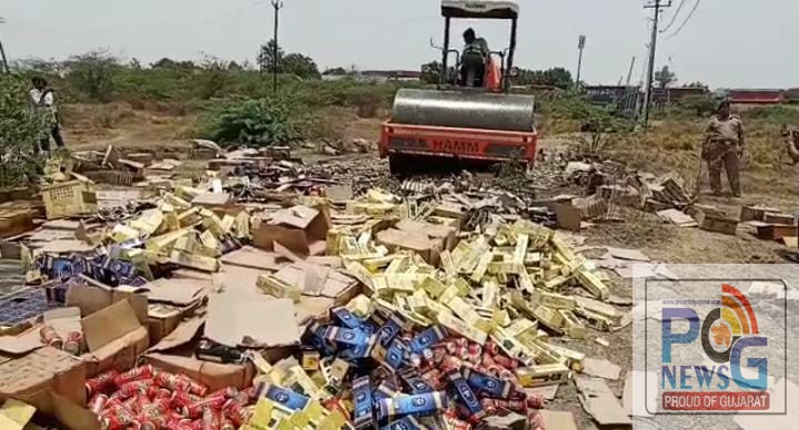 વડોદરાના કોટંબી ગામ એ વરણામાં અને તાલુકા પોલીસ મથક વિસ્તારમાંથી ઝડપાયેલ 1.75 કરોડની કિંમતનો વિદેશી શરાબનો જથ્થો નાશ કર્યો.