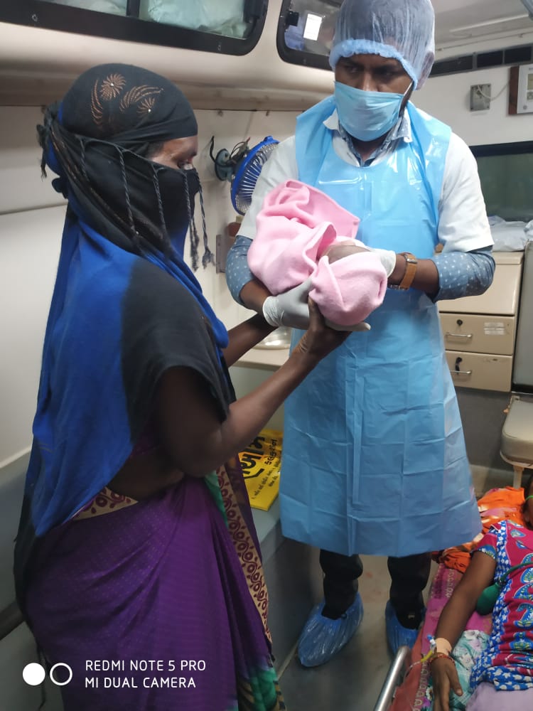 વાલિયા 108 એમ્બ્યુલન્સ ના સ્ટાફ દ્વારા સામુહિક આરોગ્ય કેન્દ્ર માં દાખલ સગર્ભા મહિલા ને વધુ સારવાર માટે બીજી હોસ્પિટલ લઈ જતા રસ્તામાં એમ્બ્યુલન્સ માં જ સફળ પ્રસુતિ કરાવી