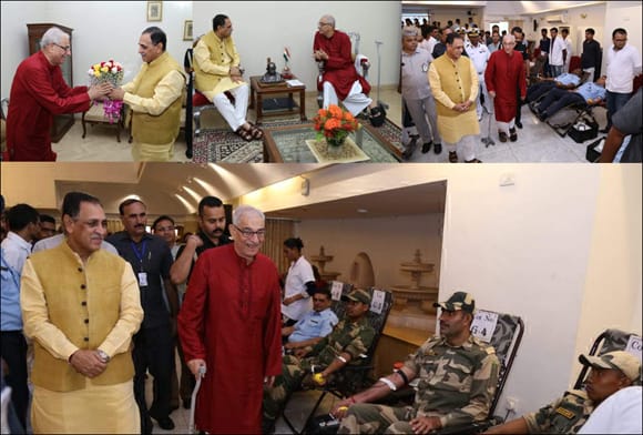 (કાર્તિક બાવીશી ) મુખ્યમંત્રી વિજયભાઈ રૂપાણીએ આજે ગુજરાતના રાજ્યપાલ ઓ.પી કોહલીજીના જન્મદિન અવસરે રાજભવન જઇને રાજ્યપાલને જન્મદિવસ શુભેચ્છાઓ પાઠવી હતી. રાજ્યપાલના જન્મદિવસની ઉજવણી રૂપે રાજભવનમાં યોજાયેલી રક્તદાન શિબિરની મુખ્યમંત્રી વિજયભાઈ રૂપાણીએ રાજ્યપાલ સાથે મુલાકાત લીધી હતી. રાજ્યપાલના જન્મ દિવસે દર વર્ષે આ રક્તદાન શિબિરનું આયોજન રાજભવન ખાતે કરાય છે.