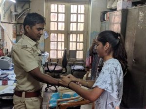 (કાર્તિક બાવીશી )અખિલ ભારતીય વિદ્યાર્થી પરિષદ (ABVP) દ્વારા આજ રોજ રક્ષાબંધન નિમિત્તે વલસાડ પોલીસ સ્ટેશનમાં જઈને પોલિસ સ્ટાફને રાખડી બાંધી રક્ષાબંધન ની ઉજવણી કરવામાં આવી હતી . ABVP ના બહેનો એ જણાવ્યું કે આખા વર્ષ દરમિયાન પોલીસના ભાઈઓ બહેનો ની રક્ષા કરતા હોય છે. રક્ષાબંધન દિવસ પણ રજાના લઈને પોતાની ફર્ઝ બજાવતા હોય છે. જેથી આજરોજ બહેનો દ્વારા પોલીસ ભાઈઓને રાખડી બાંધી રક્ષા નું વચન લીધું હતું જ્યારે પોલીસ સ્ટાફના કર્મચારીમા પણ ખુશીનો માહોલ હતો.