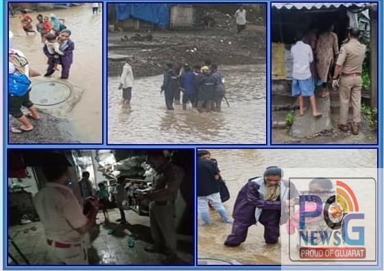 વલસાડ જિલ્લામાં મેઘરાજા અનરાધાર તેનો પ્રેમ વરસાવી રહ્યા છે ત્યારે વલસાડના નીચાણવાળા વિસ્તારોમાં પાણી ભરાયા છે જ્યારે વલસાડ જિલ્લામાં એનડીઆરએફ ની મદદ લેવામાં આવી છે અને વલસાડ જિલ્લામાં ઔરંગા નદી ગાંડીતૂર બનતા શહેરમાં પાણી ફરી વળ્યા છે ત્યારે વલસાડ જિલ્લા પોલીસ માનવતા વર્ષાની જેમ લોકોને મદદ કરવા ઉતરી પડી છે વલસાડ જિલ્લા પોલીસની પ્રસંશનીય કામગીરી સોશિયલ મીડિયામાં હાલ વાયુ વેગે પ્રસરી રહી છે.