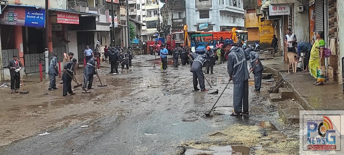 આજરોજ પૂરના પાણી ઓસરતા જ જિલ્લાના પાંચ તાલુકાની પાલિકાઓના અને સુરત મહાનગર પાલિકાના ૨૦૦ જેટલા કર્મચારીઓએ ૨૩ ટ્રેક્ટર દ્વારા આ વિસ્તારોમાં સફાઇ કામગીરી આરંભી દીધી છે. વિસ્તારોમાં કુલ ૬ ડિ-વોટરિંગ પંપો દ્વારા ભરાયેલા પાણી કાઢવા માટે કાર્યરત કરાયા છે. આ વિસ્તારોમાં સસમયસર સફાઈ કામગીરી થતાં રોગચાળો ફેલાવાની શક્યતા નહીંવત બની છે.