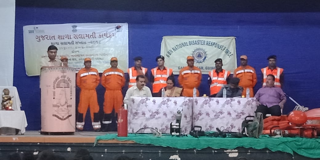 વલસાડ ખાતે શાળા સલામતી સપ્‍તાહ અંતર્ગત એન.ડી.આર.એફ. ટીમ દ્વારા કાર્યશિબિર યોજાયો..