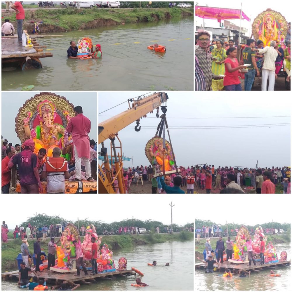 – વિરમગામમાં ગજાનન ગણપતિ બાપાને વિદાય આપતી વખતે અનેક ભાવિકો ભાવવિભોર બન્યા. વિરમગામ પંથકમાં નાના મોટા ૩૦૦ થી વધુ ગણપતિ બાપાની મુર્તિઓનુ વિસર્જન કરવામાં આવ્યુ.