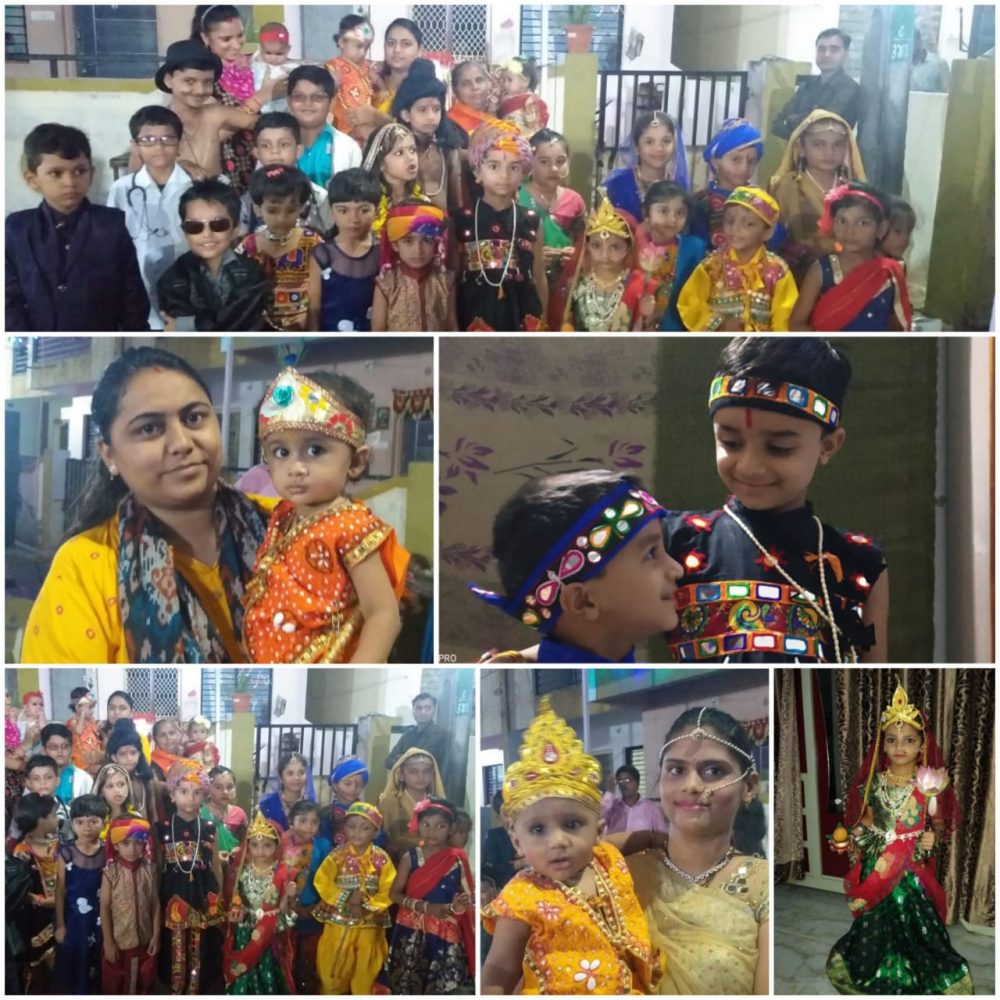 આધ્યશક્તિ જગત જનની અંબા સહિતના માતાજીની આરાધનાનું મહાપર્વ નવરાત્રી ચાલી રહી છે અને નવ દિવસ સુધી માતાજીની આરતી સ્તુતિ કરીને આરાધના કરવામાં આવી રહી છે. વિરમગામ શહેરમાં ખેલૈયાઓનો થનગનાટ જોવા મળી રહ્યો છે ત્યારે નાના બાળકોમાં રહેલી સર્જનાત્મક શક્તિઓ બહાર આવે અને બાળકો પણ પોતાનામાં રહેલુ કૌશલ્ય દર્શાવી શકે તેવા ઉદેશ્યથી વિરમગામ શહેરમાં આવેલા નીલકંઠ રો બંગ્લોઝ યુવક મંડળ દ્વારા વેશભુષાના કાર્યક્રમનું ભવ્ય આયોજન કરવામાં આવ્યુ હતુ. બાળકોના માતા પિતાઓ દ્વારા બાળકોને વિવિધ વેશભુષામાં તૈયાર કરવામાં આવ્યા હતા અને વેશભુષાને અનુરૂપ તૈયારીઓ કરાવવામાં આવી હતી. વિરમગામના નીલકંઠ રો બંગ્લોઝમાં શુક્રવારે રાત્રે બાળકો દ્વારા વેશભુષાનો કાર્યક્રમ રજુ કરવામાં આવ્યો હતો. બાળકો દ્વારા રાધા કૃષ્ણ, ક્રાંતિકારી ચન્દ્રશેખર આઝાદ, લક્ષ્મી માતા, દેવાધીદેવ મહાદેવ, સૈનિક, પરી, ગોવાળીયો, ડોક્ટર સહિતની વેશભુષાઓ રજુ કરવામાં આવી હતી અને વેશભુષાને અનુરૂપ ડાયલોગ્સ રજુ કરવામાં આવ્યા હતા. બાળકો દ્વારા રજુ કરવામાં આવેલ વિવિધ વેશભુષાઓએ લોકોમાં ખાસ્સુ આકર્ષણ જમાવ્યુ હતુ અને બાળકોને તાળીઓના ગડગડાટથી વધાવવામાં આવ્યા હતા. વેશભુષાના કાર્યક્રમમાં ભાગ લેનારા બાળકોને પ્રોત્સાહીત કરવામાં આવ્યા હતા. અત્રે ઉલ્લેખનિય છે કે, નીલકંઠ રો બંગ્લોઝના બાળકો સમૂહ આરતીમા સહભાગી થયા હતા અને વેશભુષાનો કાર્યક્રમ રજુ કરતા પહેલા બાળકોએ માતાજીના આશીર્વાદ મેળવ્યા હતા.