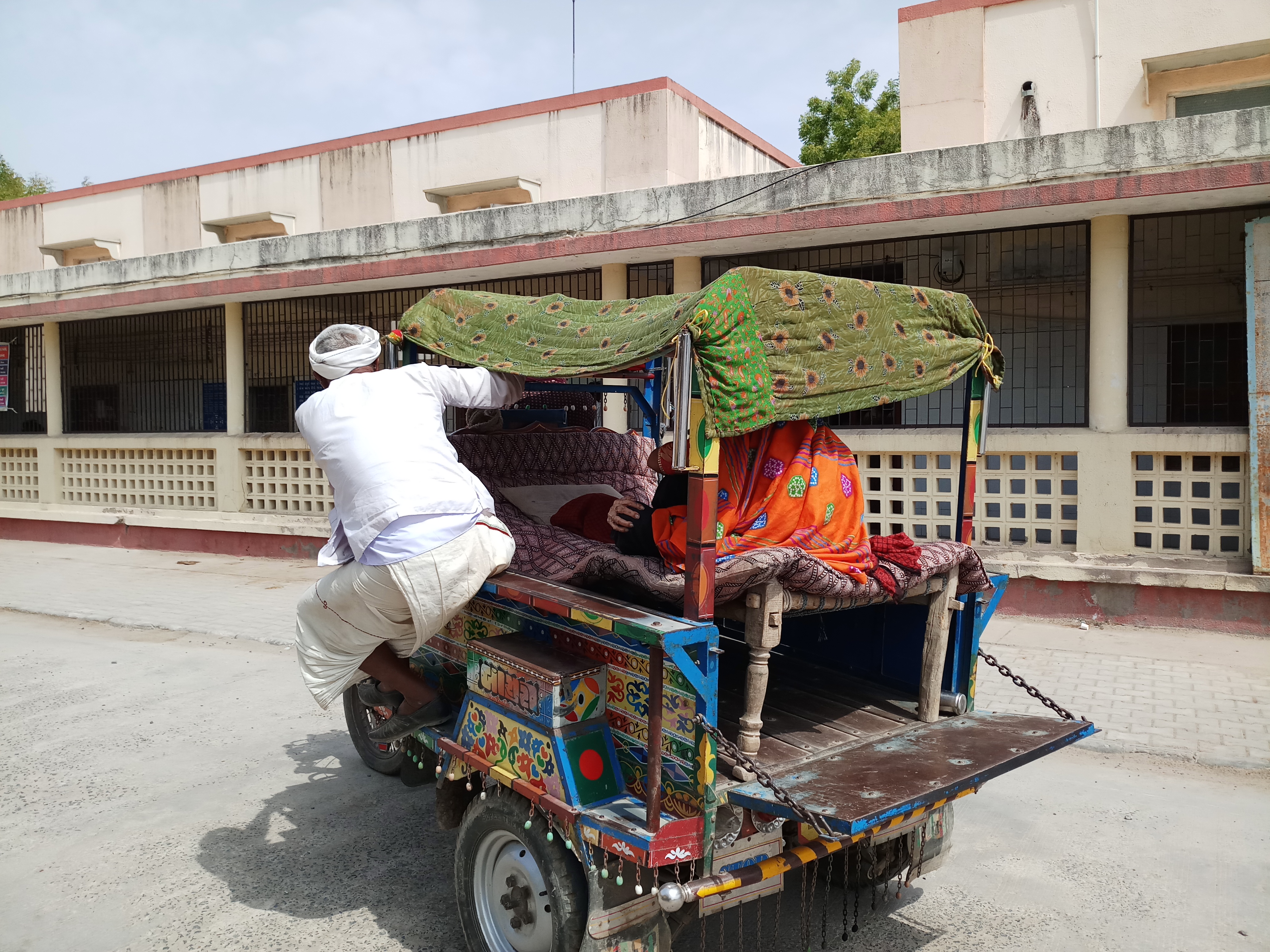 નળકાંઠાના ગ્રામ્ય વિસ્તાર ના દર્દી ને સારવાર માટે છકડા મા લાવવાની ફરજ પડી.