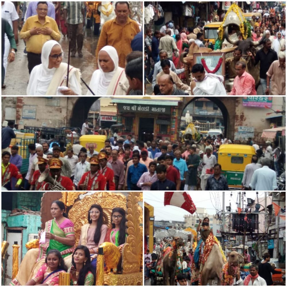 વિરમગામ શહેરના રાજમાર્ગો પર જૈન શાસન દેવની ભવ્ય શોભાયાત્રા કાઢવામાં આવી