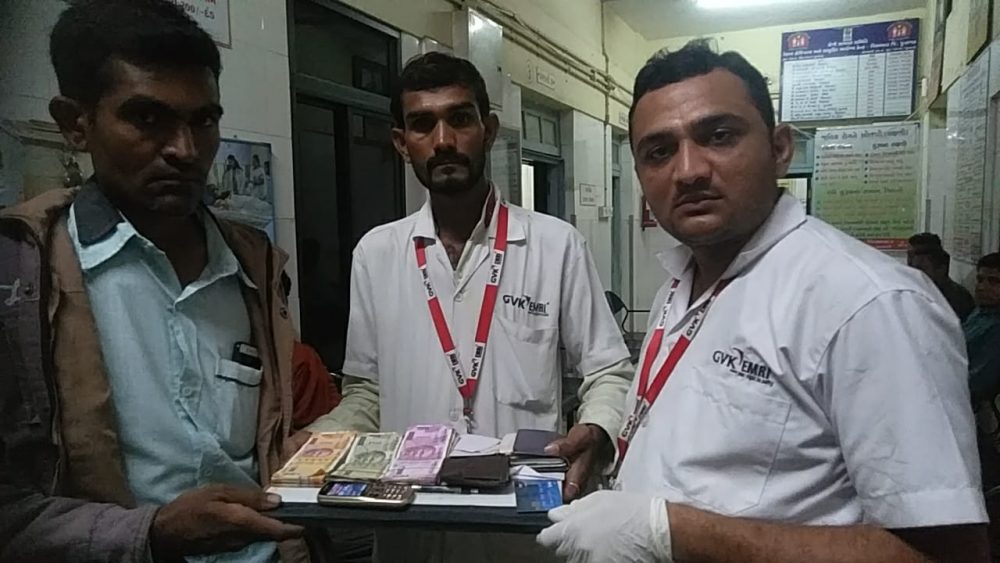 વિસાવદર 108 ના સ્ટાફ ની પ્રામાણિકતા કે જેઓએ મૃત્યુ પામેલ વ્યક્તિના સગાને બેલાખ ચાલીસ હજાર રોકડ તેમજ મોબાઈલ એ.ટી.એમ કાર્ડ તેમજ પાકીટ પરત કરેલ જયારે આ બનાવમાં વિસાવદર 108માં ફરજ બજાવતા L.M.T મનીષભાઈ તેમજ પાયલોટ ચંદ્રકાંતભાઈ ઠાકરને ફોન આવે કે વિસાવદરના રાવણી કુબા ગામે વાડીમાં વિઠ્ઠલભાઈ ભોવન ભાઈ જાટકીયા હુમલો આવેલ છે તે સમાચારમળતા જ વિસાવદર 108 સ્થળ પર પહોંચી હતી ત્યાં વિઠ્ઠલભાઈની હાલત ગંભીર જણાતા તેને પ્રાથમિક સારવાર આપી અને વિઠ્ઠલભાઇને 108 દ્વારા વિસાવદર સરકારી હોસ્પિટલ ખાતે સારવાર માટે લાવવામા આવી રહ્યા હતા ત્યારે તેને પ્રાણઘાતક એટેક આવતા તેમનું રસ્તામાં મોત થયું હતું જ્યારે તેની પાસે રહેલ રૂપિયા બે લાખ ચાલીસ હજાર તેમજ મોબાઈલ એટીએમ કાર્ડ અને એક પાકીટ જેમા વિઠ્ઠલભાઈના સગા-સંબંધીના નંબર હોય તે ખરાઇ કરી તેના જેના સગાને તે પરત કરી પ્રમાણિકતાનું ઉદાહરણ આપ્યું હતું.