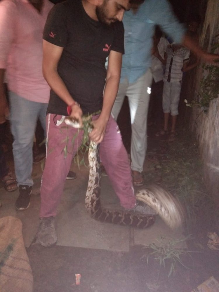 ભાલોદ ના નદી કિનારા પાસેથી નવ ફુટ જેટલો લાંબો અજગર મળી આવ્યો સેવ એનિમલ ટીમ અને વાઇલ્ડ લાઇફ રેસ્ક્યુ ટીમે પકડીને વન વિભાગને સોંપ્યો