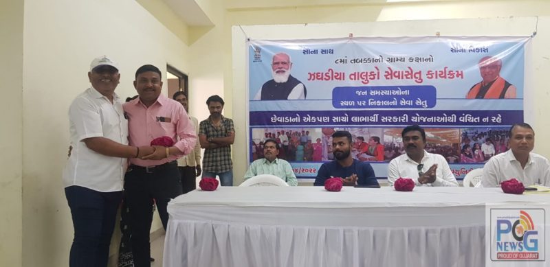 ભરૂચ જિલ્લાના ઝઘડિયા તાલુકામાં છ ચરણમાં યોજાનાર સેવાસેતુ કાર્યક્રમનો આજરોજ ઝઘડિયા કોમ્યુનિટી હોલ ખાતેથી પ્રારંભ કરવામાં આવ્યો હતો. ઝઘડીયા મામલતદાર અને આયોજન સહ તાલુકા વિકાસ અધિકારીના માર્ગદર્શન હેઠળ યોજાયેલ આ સેવાસેતુના કાર્યક્રમમાં કાર્યક્રમ અંતર્ગત સમાવી લેવાયેલ ગામોની જનતાના વિવિધ કામોનો સ્થળ પર નિકાલ કરવાની કામગીરી હાથ ધરવામાં આવી હતી.