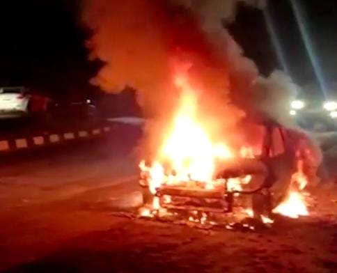 ભરૂચ જિલ્લાના ઝઘડિયા તાલુકાના રતનપુર ગામ નજીક ગતરાત્રીના સમયે કારમાં અચાનક આગ ભભૂકી ઉઠતા ભારે નાશભાગના દ્રશ્યો સર્જાયા હતા. ઝઘડિયાથી રતનપુર તરફ આવતી કારમાં રસ્તા વચ્ચે જ પ્રથમ ધુમાડા નીકળવા લાગતા કારમાં સવાર ૪ જેટલા લોકોએ સમય સુચકતા વાપરી કારમાંથી બહાર ઉતરી ગયા હતા, જે બાદ જોત જોતામાં કારમાં આગની જ્વાળાઓના ભડકા થતા ઉપસ્થિત લોકોમાં એક સમયે ઘભરાટનો માહોલ છવાયો હતો.