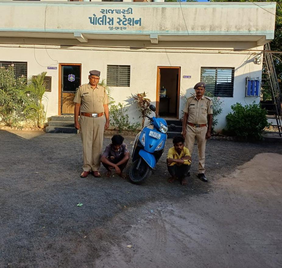 ભરૂચ જિલ્લાના ઝઘડિયા તાલુકાના રાજપારડી પોલીસે પેટ્રોલિંગ દરમિયાન ચોરીની જ્યુપિટર બાઇક સાથે બે ઇસમોને ઝડપી લીધા હતા. રાજપારડી પોલીસમાંથી મળતી વિગતો મુજબ રાજપારડી પોલીસે પોલીસ મથકમાં નંધાયેલ વિવિધ ગુનાઓનો ભેદ ઉકેલવા પ્રયત્ન હાથ ધર્યા હતા, તે અંતર્ગત રાજપારડી પોલીસ મથકમાં એક જ્યુપિટર ટુ વ્હિલર રુ.૬૯૦૦૦ નું ચોરી થયાની ફરિયાદ લખાઇ હતી તેના અનુસંધાને રાજપારડી પીએસઆઇ વી.આર.પ્રજાપતિએ પોલીસ જવાનોની અલગઅલગ ટીમો બનાવીને સીસી ટીવી સર્વેલન્સ તેમજ હ્યુમન ઇન્ટેલિજન્સના આધારે આ ગુનાનો ભેદ ઉકેલવા પ્રયત્ન હાથ ધર્યા હતા. દરમિયાન પીએસઆઇ પ્રજાપતિ તેમજ પોલીસ જવાનો દિલિપભાઇ અરવિંદભાઇ,વિનોદભાઇ ચંદુભાઇ, નિરંજનભાઇ જેઠાભાઇ તેમજ ચંપકભાઇ હરિસીંગભાઇની ટીમને પેટ્રોલિંગ દરમિયાન બાતમી મળી હતી કે બે ઇસમો આ ચોરાયેલ જ્યુપિટર બાઇક લઇને અવિધા ગામ તરફથી રાજપારડી બાજુ આવનાર છે. ત્યારબાદ પોલીસે વોચ ગોઠવીને આ બે ઇસમો નરેશ ગોવિંદભાઇ વસાવા અને શ્રવણ રામાભાઇ વસાવા બન્ને રહે.ગામ નવાપોરા, તા.ઝઘડિયા,જિ.ભરૂચનાને ચોરીની ટુ વ્હિલર બાઇક સાથે ઝડપી લીધા હતા. પોલીસે રુ.૬૯૦૦૦ ની કિંમતનું જ્યુપિટર ટુ વ્હિલર બાઇક કબજે લઇને આ ગુના હેઠળ ઝડપાયેલા ઉપરોક્ત બન્ને ઇસમો વિરુધ્ધ સદર ગુના અંતર્ગત કાર્યવાહી હાથ ધરી હતી.