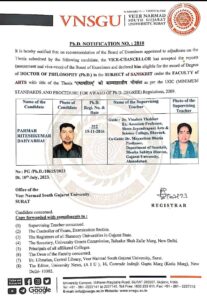 ઝઘડીયા તાલુકાની પ્રાથમિક શાળા રઝલવાડાના શિક્ષકને પી. એચ. ડી. ડિગ્રી એનાયત કરાઈ.