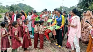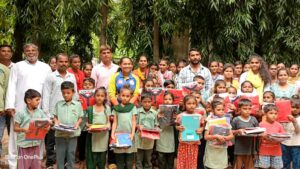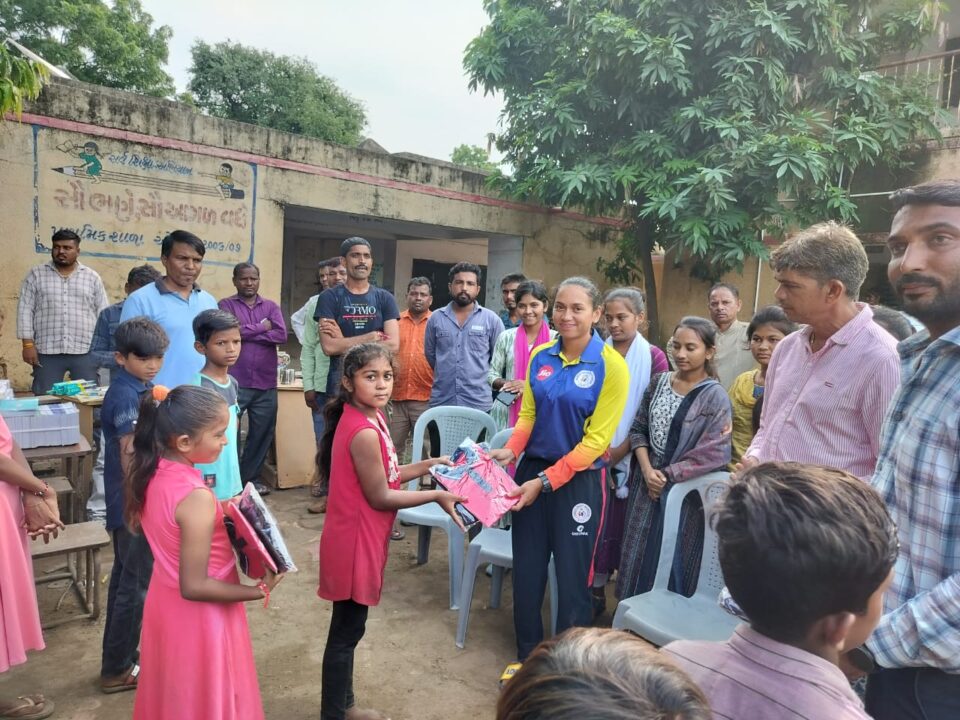 ઝઘડીયાના પૂરગ્રસ્ત ગામડાંઓની શાળાઓમાં જિલ્લા શિક્ષણ વિભાગના સહયોગથી ૮૦૦ જોડી ડ્રેસ અને ૩૦૦૦ હજાર જેટલી નોટબુકનું વિતરણ કર્યું