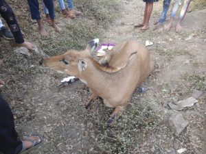 ભરૂચ જિલ્લાના ઝઘડીયા તાલુકાના મુલદ ગામ નજીક સરદાર પ્રતિમા રોડ પર આજે એક નીલગાય જખ્મી હાલતમાં મળી આવી હતી.