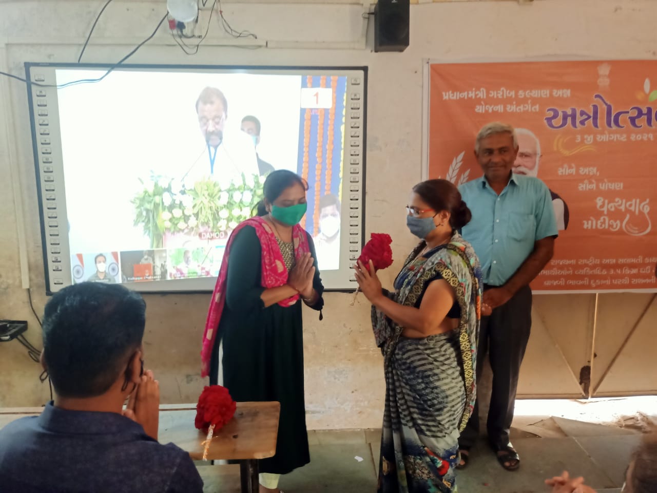 ભરૂચ જિલ્લાના ઝઘડિયા તાલુકાના રાણીપુરા ગામે આજે ત્રીજી ઓગસ્ટના રોજ પ્રાથમિક શાળામાં પ્રધાનમંત્રી ગરીબ કલ્યાણ યોજના અંતર્ગત અન્નોત્સવની ઉજવણી કરવામાં આવી હતી. સૌને અન્ન સૌને પોષણના લક્ષ્ય સાથે આજરોજ ગરીબોને અન્ન વિતરણ કરવામાં આવ્યું હતું. રાજ્યના રાષ્ટ્રીય અન્ન સલામતી કાયદા હેઠળ સમાવિષ્ટ તમામ લાભાર્થીઓને વ્યક્તિ દીઠ ૩.૫ કિલો ઘઉં અને ૧.૫ કિલોગ્રામ ચોખા રાણીપુરા વ્યાજબી ભાવની દુકાન પરથી વિનામૂલ્યે વિતરણ કરવામાં આવ્યા હતા.