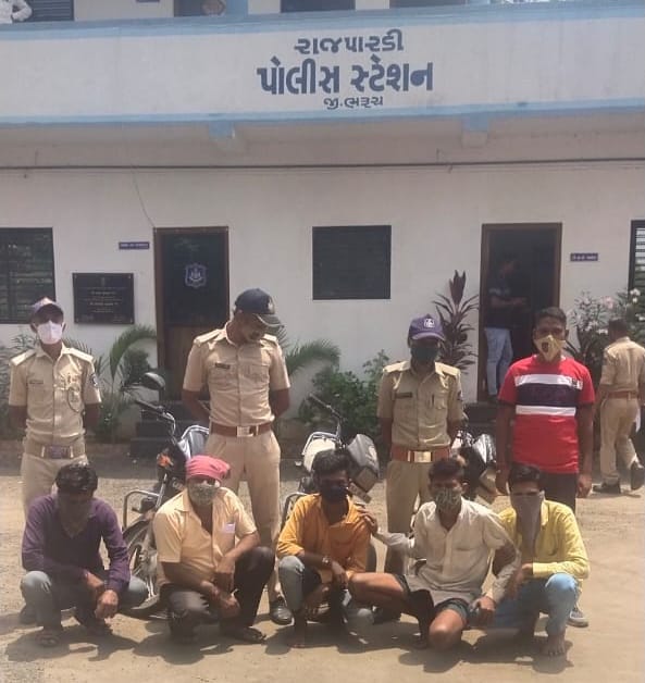પોલીસે ઘટના સ્થળેથી સફિકભાઇ મેહબુબભાઇ બેલીમ રહે.રુંઢ કસ્બા તા.ઝઘડીયા, સતિષભાઇ અશોકભાઇ વસાવા રહે.પ્રાંકડ તા.ઝઘડીયા, સુનિલભાઇ કનુભાઇ વસાવા રહે.જરસાડ તા.ઝઘડીયા,સુરેશભાઈ મનસુખભાઇ વસાવા રહે.રાજપારડી તા.ઝઘડીયા અને નટવરભાઇ જીવણભાઇ વસાવા રહે.જરસાડ તા.ઝઘડીયા જિ.ભરૂચના રોકડા રૂપિયા, ૩ નંગ મોટરસાયકલ મળી કુલ રૂ.૮૮,૧૩૦ ના મુદ્દામાલ સાથે ઝડપાઇ ગયા હતા. જ્યારે સુરેશ મણીલાલ વસાવા રહે.પ્રાંકડ,મુસ્તાકભાઇ સબ્બિરભાઇ રહે.રુંઢકસ્બા તા.ઝઘડીયા, રાહુલભાઇ ટીનાભાઇ વસાવા રહે.પ્રાંકડ તા.ઝઘડીયા, રાકેશભાઇ રતિલાલ વસાવા રહે.રાજપારડી તા.ઝઘડીયા અને રતિલાલ ઉમેદભાઇ વસાવા રહે.જરસાડ તા.ઝઘડીયા પોલીસની રેઇડ જોઇને ભાગી છુટ્યા હતા. કોરોના મહામારીનો સમય ચાલતો હોઇ એકબીજાની જીંદગી જોખમાય અને સંક્રમણ ફેલાય એ રીતે સોશીયલ ડિસ્ટન્સનો અભાવ રાખીને જુગાર રમતા પકડાઇ ગયેલ આ ઇસમો વિરુધ્ધ પોલીસે ગુનો નોંધી ફરાર થયેલા અન્ય ઇસમોને ઝડપી લેવા કવાયત હાથ ધરી હતી.