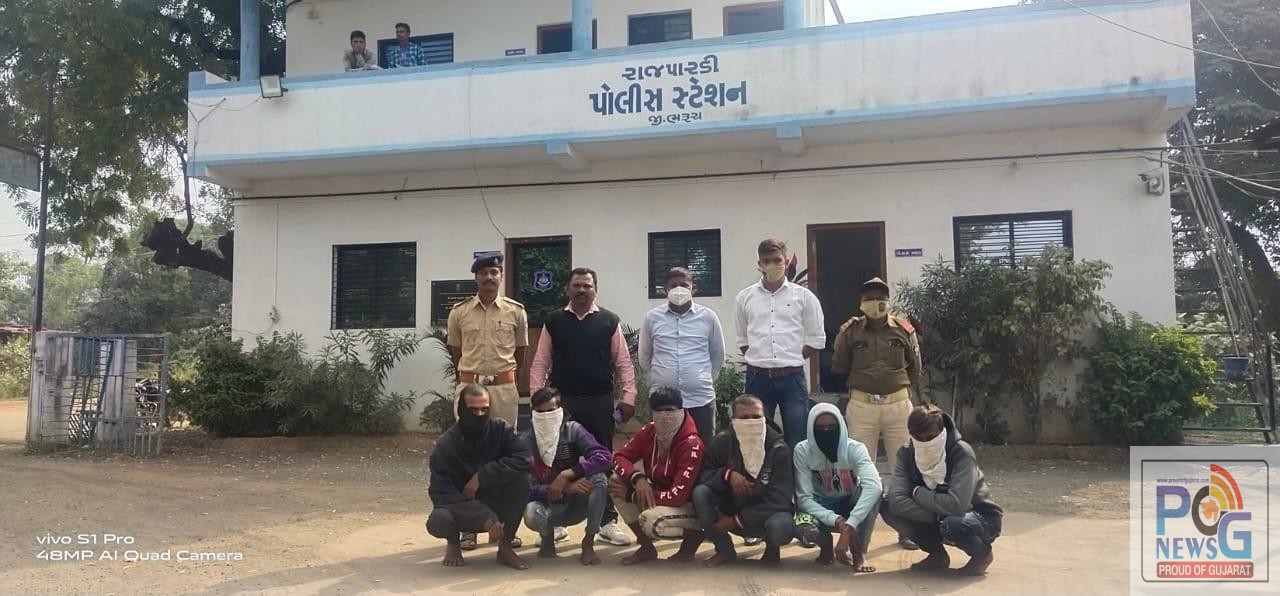 ભરૂચ જિલ્લામાં દારુ જુગારની બદી બાબતે કડક અમલ કરાવવા ઉચ્ચ અધિકારીઓ તરફથી મળેલ સુચનાના અનુસંધાને રાજપારડી પીએસઆઇ જે.બી.જાદવને પોલીસ સ્ટેશન વિસ્તારમાંથી માહિતિ મળી હતી કે નવાઅવિધા ( ખડોલી) ગામે ગોચરની ખુલ્લી જગ્યામાં બાવળીયાની ઓથમાં બેસીને મોબાઇલની ટોર્ચના અજવાળામાં કેટલાક ઇસમો જુગાર રમે છે. પોલીસે બાતમી મુજબના સ્થળે છાપો મારતા ત્યાં કેટલાક ઇસમો ભેગા મળી જુગાર રમતા જણાયા હતા. પોલીસે ઘટના સ્થળેથી વિક્રમભાઇ દિલિપભાઇ વસાવા, મુકેશભાઇ રમેશભાઈ વસાવા, અનિલભાઇ રમણભાઇ વસાવા, સહદેવભાઇ શનાભાઇ વસાવા, અભયભાઇ મહેશભાઇ વસાવા અને રાકેશભાઇ દિનેશભાઇ વસાવા તમામ રહે.નવાઅવિધા ( ખડોલી) તા.ઝઘડીયાનાને રોકડા રુપિયા તેમજ મોબાઇલ નંગ ૪ મળી કુલ રુ.૧૯,૨૭૦ ના મુદ્દામાલ સાથે ઝડપી લઇને કોવિડ ગાઇડલાઇનનો ભંગ કરીને સામાજિક અંતર રાખ્યા વિના ટોળુ વળીને જુગાર રમતા પકડાઇ ગયેલ હોઇ તેમના વિરુદ્ધ ગુનો નોંધી કાયદેસર કાર્યવાહી હાથ ધરી હતી. નવા વર્ષની શરુઆતે પોલીસે જુગારીયા પ્રત્યે લાલઆંખ કરતા પંથકમાં દારુ જુગારની બદી સાથે સંકળાયેલા અસામાજિકોમાં નાસભાગ મચી જવા પામી હતી.