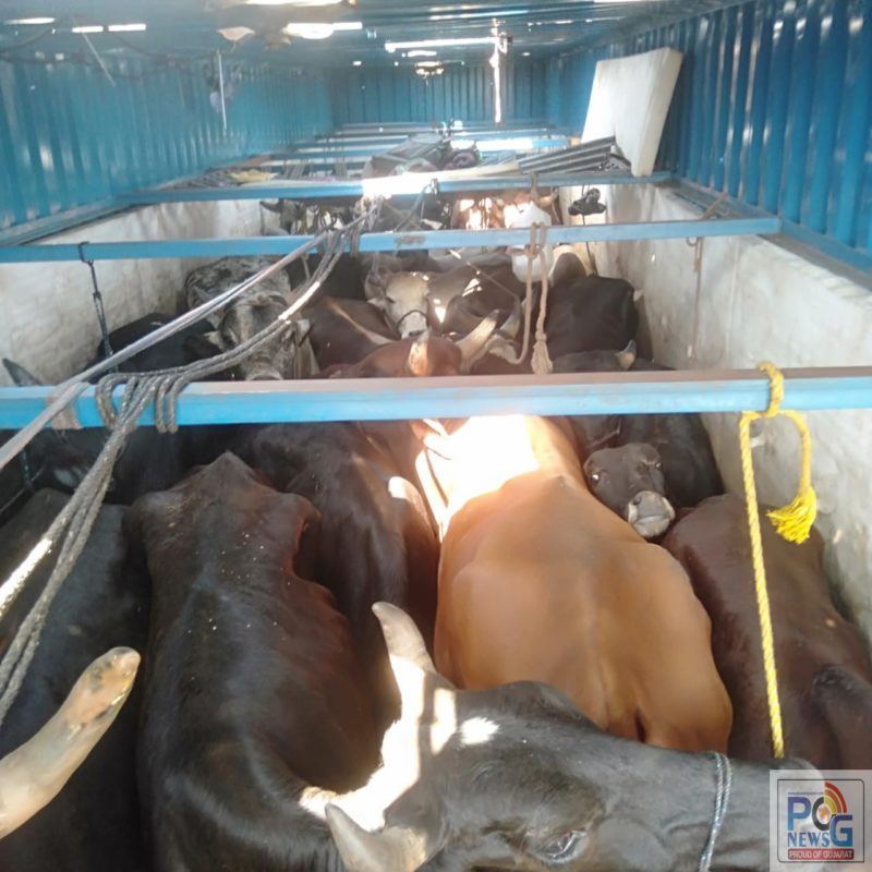 ભરૂચ જિલ્લાના ઝઘડીયા તાલુકામાંથી પસાર થતા નેશનલ હાઇવે પર મુલદ ટોલનાકા નજીક ખીચોખીચ ૩૬ જેટલા પશુઓ ભરેલ એક કન્ટેનર ઝડપાયું હતું.