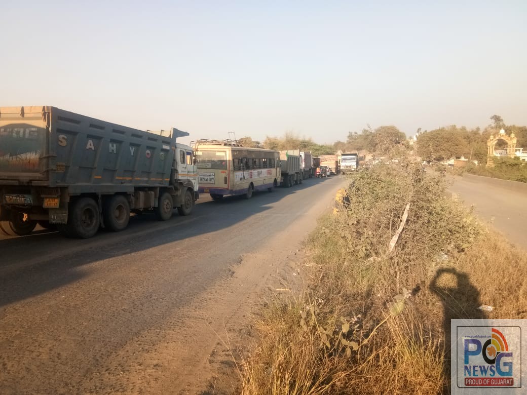 ઝઘડીયાના રતનપુર નજીક ધોરીમાર્ગ પર વાહનો અટવાતા વાહનોની કતાર જામી.