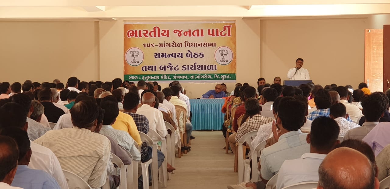 માંગરોળ તાલુકાના ઝંખવાવ ગામે આવેલ હનુમાનજી મંદિર ખાતે ભારતીય જનતા પાર્ટી ૧૫૬ માંગરોળ વિધાનસભા ના ભાજપ કાર્યકરો ની સમન્વય બેઠક અને બજેટ કાર્યશાળા કેબિનેટ મંત્રી ગણપતભાઈ વસાવા તેમજ સુરત જિલ્લા ભાજપ પ્રમુખ દિલીપસિંહ રાઠોડ ની ઉપસ્થિતિમાં કાર્યક્રમ યોજાયો હતો. ઉપરોક્ત કાર્યશાળામાં માંગરોલ અને ઉમરપાડા તાલુકા ભાજપના કાર્યકરો કેન્દ્ર સરકાર અને રાજ્ય સરકાર દ્વારા ખાસ આદિવાસી વિસ્તાર માટે વિકાસના કામોની બજેટમાં કરેલ જોગવાઈ અને રાજ્ય સરકારની વિવિધ કલ્યાણ કારી યોજના આ અંગે કેબિનેટ મંત્રી ગણપતભાઈ વસાવા દ્વારા માહિતી આપવામાં આવી હતી અને સુરત જિલ્લા ભાજપ પ્રમુખ દિલીપ સિંહ રાઠોડ, હર્ષદભાઈ ચૌધરી વગેરે આગેવાનો દ્વારા વરસ 2021 માં થનાર વસ્તીગણતરીના કાર્યક્રમ અંગે કાર્યકરો ની ભૂમિકા અંગે માર્ગદર્શન આપવામાં આવ્યું હતું. વધુ માં ભાજપ પક્ષના સ્થાપના દિવસે 6 એપ્રિલ ની ઉજવણી દરમિયાન બુથ સમિતિ ની ખરાઇ ભાજપ પક્ષ નો ઇતિહાસ વગેરે મુદ્દે માર્ગદર્શન આપવાના કાર્યક્રમનું આયોજન ઉપરોક્ત કાર્યશાળામાં કરવામાં આવ્યું હતું. વધુમાં કેન્દ્ર અને રાજ્ય સરકાર દ્વારા ખાસ આદિવાસી વિસ્તાર માટે કરેલ જોગવાઈ ને આવકારી કેન્દ્ર અને રાજ્ય સરકારને અભિનંદન આપવામાં આવ્યા હતા. તેમજ રાજ્ય સભાના ઉમેદવાર તરીકે ભાજપ પક્ષે એક આદિવાસી મહિલા રમીલાબેન બારા ની પસંદગી કરી આદિવાસી સમાજ ભાજપ પાર્લામેન્ટરી બોર્ડ નો આભાર માની અભિનંદન આપવામાં આવ્યા હતા. આ બેઠક માં સુરત જિલ્લા પંચાયત કારોબારી અધ્યક્ષ દીપકભાઈ વસાવા, તાલુકા પંચાયત પ્રમુખ જગદીશભાઈ ગામીત, તાલુકા પંચાયત કારોબારી અધ્યક્ષ ઉમેદભાઈ ચૌધરી, સામાજિક ન્યાય સમિતિ અધ્યક્ષ મુકેશભાઈ ચૌહાણ, ઉમરપાડા તાલુકાના પંચાયત પ્રમુખ દરિયાબેન વસાવા, તાલુકા પંચાયત ઉપપ્રમુખ ગંભીરભાઈ વસાવા, સુરત જીલ્લા સમિતિના અધ્યક્ષ સામસિગભાઈ વસાવા, ઉમરપાડા તાલુકા ભાજપ મહામંત્રી અમિષભાઈ વસાવા, માજી સિંચાઇ સમિતિના અધ્યક્ષ શાંતિલાલભાઈ વસાવા હાજર રહ્યા હતા.
